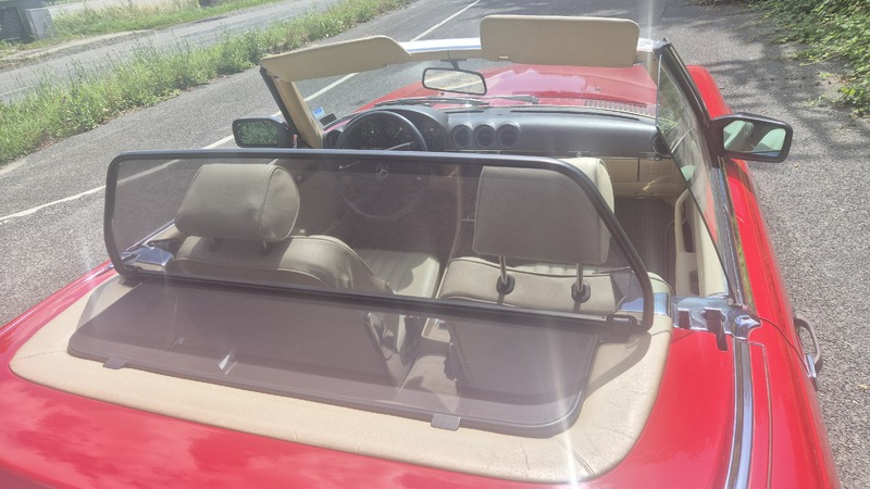 Verdeck, immer noch das Originale !! mit 2 kleinen reparierten Rissen in den äußeren PVC Fenstern. Störte mich nicht, da es ein CABRIO ist !!