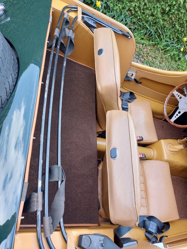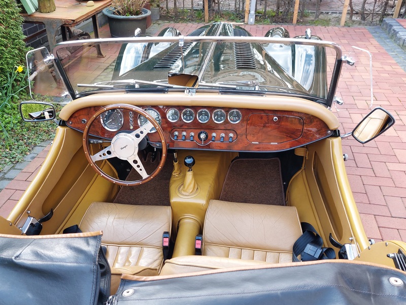 gepfl. Zustand, Besitz 24 Jahre unfallfrei, Alu Karos. Dark Oliv, Leder braun, Speichenräder, Zahnstangenlenkung, Kauffeld Armaturenbrett, Jaguar Schalter, Smith Armaturen, Zündanlage und Blinkgeber überholt, Original Dach, Persenning und Steckscheiben, TÜV 03/28, Originalbrief, H- Kennz.WGA in Arbeit, aus Altersgründen abzugeben, VHB 38.500,-