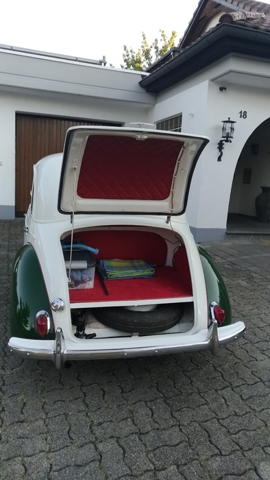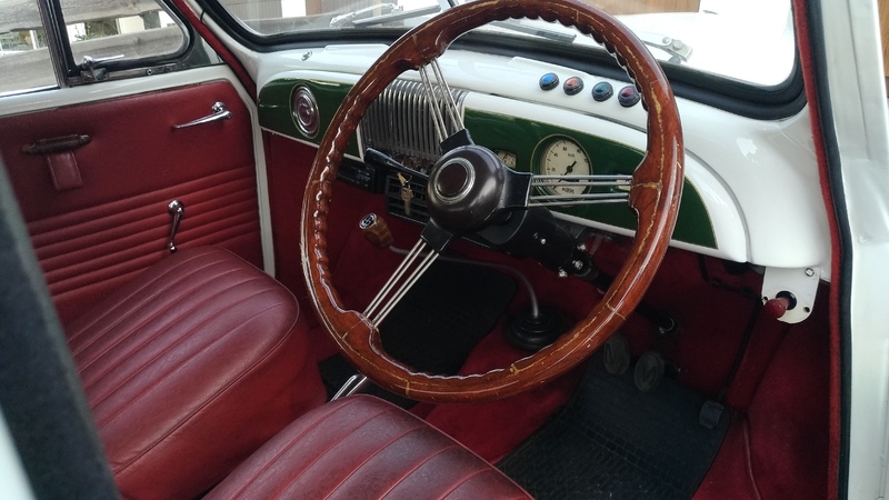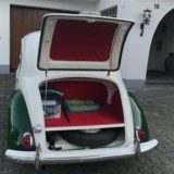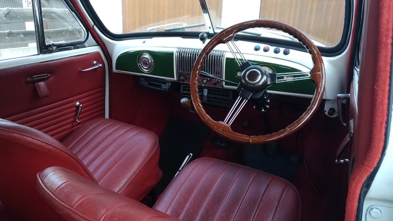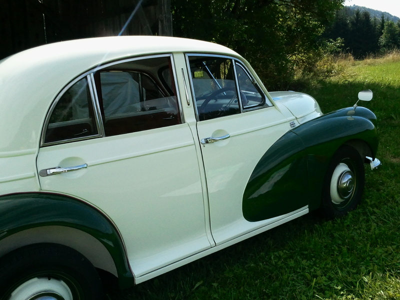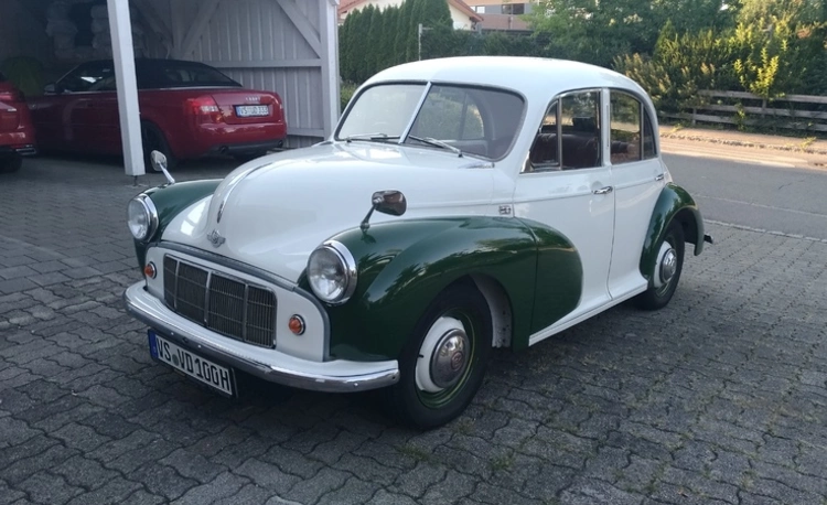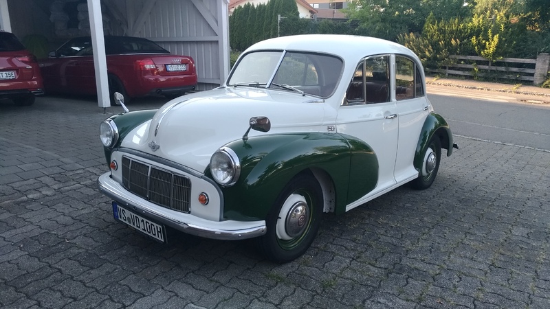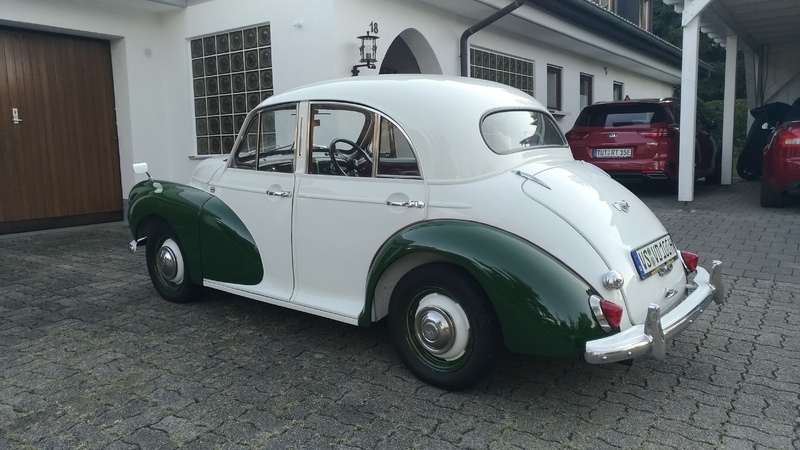 Ich habe den Morris Minor im April 1998 in Malaysia gekauft. 1999 wurde der Motor komplett überholt und das Fahrzeug komplett lackiert. 2001 erfolgte eine erneute Lackierung die bis heute Bestand hat. Der innenraum ist noch im Originalzusatnd, bis auf das Lackierte Armaturenbrett. 2003 wurde der Morris nach Deutschland überführt und zugelassen. Seither läuft der Morris problemlos und hat eine vielzahl an TÜV-Untersuchungen ohne Mängel absolviert. 2023 wurde die Komplette Bremsanlage erneuert. Optisch ist der Morris in einem sehr guten Zustand (kein Rost). Türdichtungen vorne habe ich vor 5 Jahren erneuert, hinten müssen sie nch gewechselt werden. Der Morris hat noch Winker die voll Funktionsfähig sind.