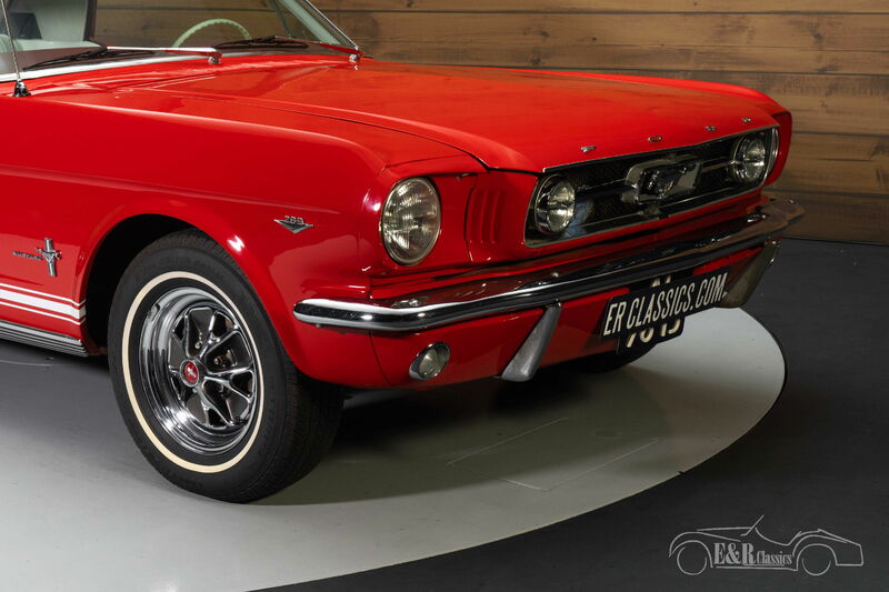 Ford Mustang Coupé | Restauriert | Geschichte bekannt | 1965 Höhepunkte: - Restauriert - Geschichte bekannt - 289 CUI V8-Motor - Automatikgetriebe - GT-Look Restauriertes Ford Mustang Coupé von 1965 zu verkaufen Wir bieten dieses wunderschöne Ford Mustang Coupé aus dem Jahr 1965 zum Verkauf an. Der Mustang stammt von einem namhaften Kunden, der diesen Ford in der Vergangenheit bei uns gekauft hat. Der Mustang wurde immer gut gewartet und es liegen diverse Rechnungen vor. Der Ford wurde in der Vergangenheit restauriert und ein Fotobericht der Restaurierung ist verfügbar. Dieser Klassiker wird vom leistungsstarken A-Code 289 CUI V8-Motor mit Automatikgetriebe angetrieben. Es ist außerdem mit Servobremsen und Servolenkung ausgestattet, die für ein wunderbares Fahrerlebnis sorgen. Ford Mustang Coupe im GT-Look zu verkaufen Das Ford Mustang Coupé, das wir hier anbieten, kann sich wirklich sehen lassen. Er ist in einer wunderschönen roten Lackierung gehalten, die sehr gut mit dem Chrom harmoniert und perfekt zu diesem amerikanischen Klassiker passt. Der Mustang ist außerdem mit dem begehrten GT-Look mit zusätzlichen Scheinwerfern, GT-Tankdeckel und Schalldämpfern in der hinteren Stoßstange ausgestattet. Die weiße Pony-Innenausstattung ist in einem sehr gepflegten Zustand und bildet einen schönen Kontrast zur roten Lackierung. Kurz gesagt: ein sehr komplett ausgestatteter Mustang von 1965 in einer wunderschönen Farbgebung, der vollständig für seinen neuen Besitzer bereit ist. Möchten Sie ein Ford Mustang Coupé von 1965 kaufen? Suchen Sie ein Ford Mustang Coupé von 1965? Dann hinterlassen Sie Ihre Daten über das Kontaktformular auf dieser Seite oder rufen Sie direkt unter +31 416 751 393 an. Unsere Vertriebsmitarbeiter beantworten gerne alle Ihre Fragen oder erstellen sogar ein persönliches Einkaufsvideo für Sie. Wir bieten Unterstützung beim Transport. Wir liefern Ihnen Ihr Auto mit Tüv, H-Kennzeichen und Fahrzeugbrief, gegen Aufpreis. Sie zahlen keine Importsteuer mehr. Auch können Sie das Fahrzeug bei unsere Finanzierungspartner finanzieren.