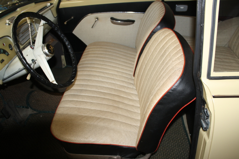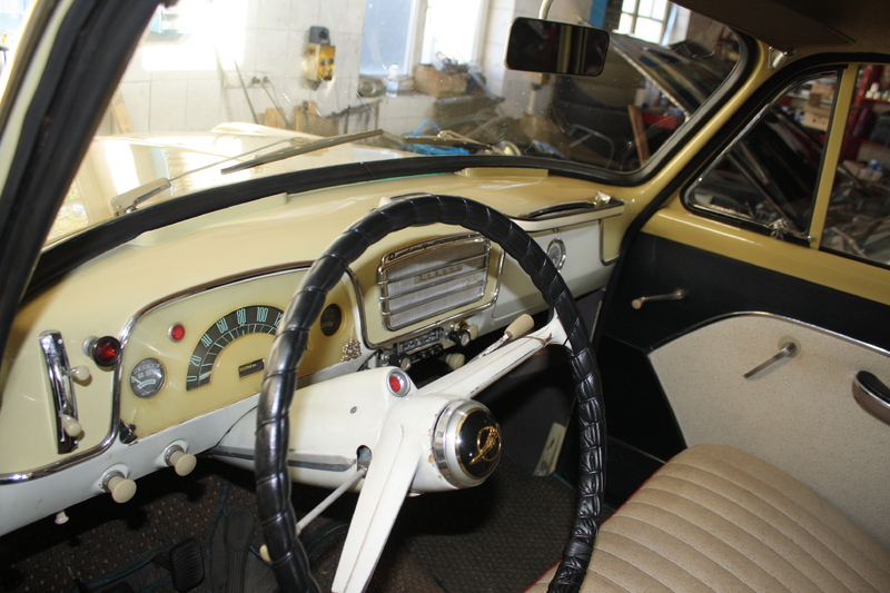 Opel Olympia, Bj. 57, TÜV neu, vanillegelb/Dach weiß, innen original Kunstlederhell, sehr gepflegt!, Original Webasto Faltdach ab Werk!, Türen  Kantenrost, 3-Gang-Lenkradschaltung, Pappbrief, Original Radio, Preis € 9.900.-