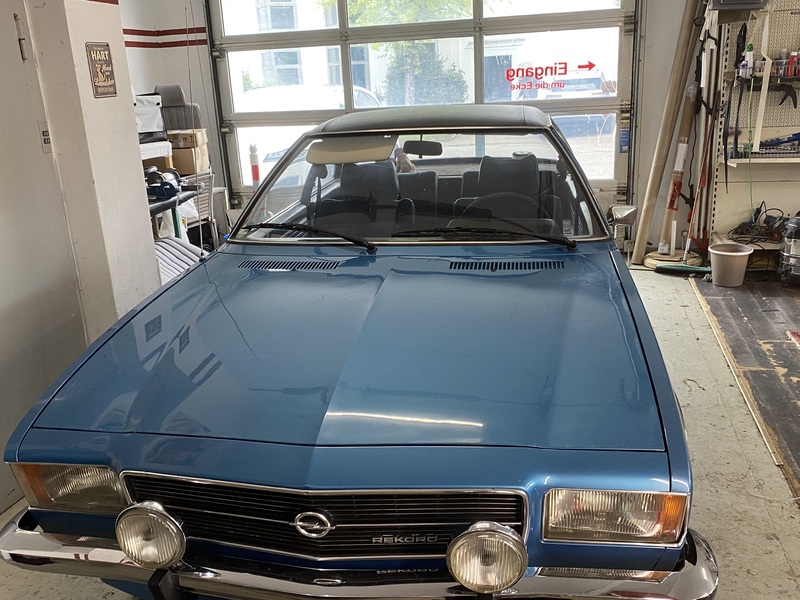 Sehr schöner seltener Opel Rekord D Coupé . Unverbastelt , kein Rost . Orginal Ausstattung, Farbe, Radio . Velours blau innen . Vinyldach , einfach nur top . Service Heft , Orginal Brief , alles vorhanden . Einsteigen und fahren . Ersatz Rückleuchten hinten Orginal , Satz Reifen mit Felgen auch dabei .