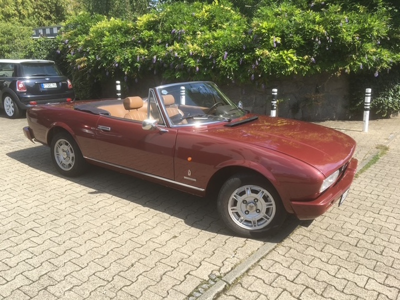Dieses Peugeot 504 Cabriolet wurde 1983 erstmals bei Peugeot in Hanau Steinheim zugelassen. Nach sechs Monaten als Vorführwagen habe ich es erworben und seitdem liebevoll gepflegt. 1991 wurde das Fahrzeug komplett restauriert: Die Karosserie wurde voll verzinkt, sodass Rost kein Thema ist (Dokumentation und Gutachten vorhanden). Anschließend erhielt der Wagen eine neue Lackierung in der Originalfarbe Amarillis Rot und der Innenraum wurde mit hochwertigem Leder neu bezogen.