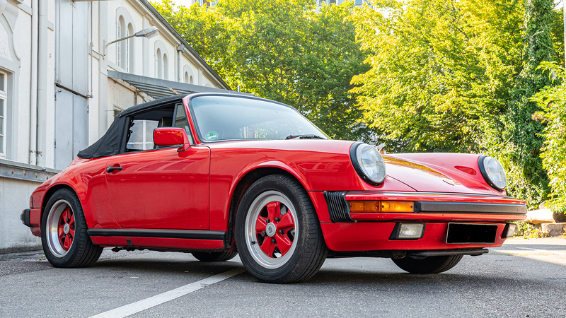Porsche 911, G50 Getriebe, Sonderlackierung - rote Felgen, US-Ausstattung.