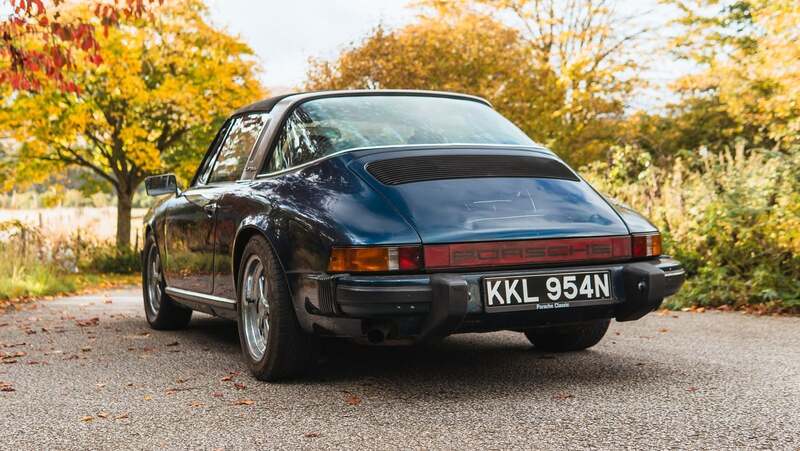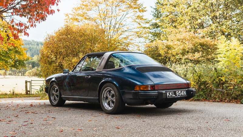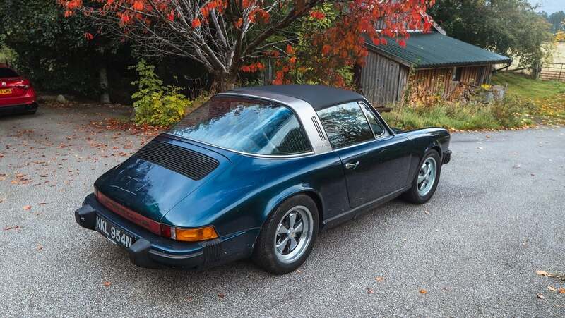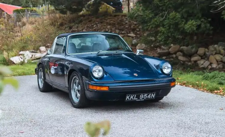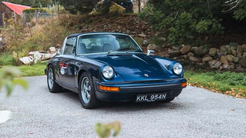 1975 Porsche 911 Targa with left-hand drive, imported from California in 2020 and registered in the UK. The car is powered by an air-cooled 2.7-litre flat-six engine (1977 MY, non-matching numbers) paired with a Porsche 915 manual gearbox. Power output is estimated at around 150 hp (US specification).