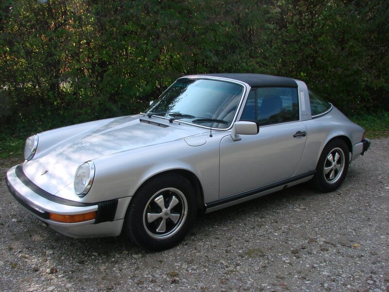 Porsche 911 Targa Oldtimer, Erstzulassung 10/1976, silber außen 1 A Zustand, schwarzes Leder 1 A Zustand innen, Lederlenkrad, 2 Sitzer mit hinten 2 Notsitze mit nachträglich eingebauten Gurten, mit Retro Radio mit Freisprecheinrichtung und Bluetooth, unauffälliges Soundsystem, Targadach Top in Ordnung, Unterboden Top, kein Rost, wurde die meiste Zeit seines Lebens in Califonien gefahren, Scheckheftgepflegt mit laufendem TüV und HU bis Oktober 2027, mit Fuchs-Alufelgen, mit Vita,