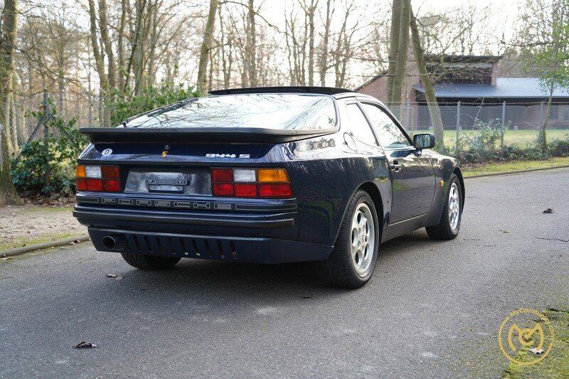 Im Februar 1987 ausgeliefert, wurde dieser 944 S in der seltenen Farbkombi Azuritblau (LY50) und beigem Porsche Script (989) bestellt. Erstbesitzer war die Porsche Niederlassung Remscheid, welche den 944 S mit einer Reihe an Sonderausstattungen ab Werk ausliefern ließ. Diese umfassen: Targa-Hubdach (650), Heckschürze (472), Servolenkung (657), ABS (593), Heckscheibenwischer (425), verstell- und beheizbare Seitenspiegel (528), oberhalb schattierte Frontschutzscheibe (567), elektrische Fensterheber (651), eine automatische Heizungsregulierung (424) und ein Kasettenmünzbehälter (423).