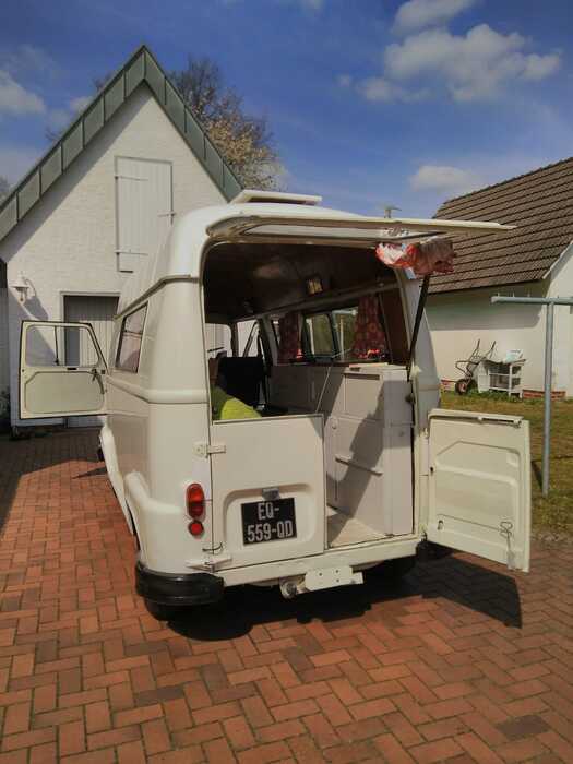 Zum Verkauf steht eine Renault Estfette, im Wohnmobilausbau, aus dem Jahr 1980. Ein echtes Stück Autogeschichte und inzwischen ein seltener Klassiker auf deutschen Straßen. Die Estafette überzeugt durch den unverwechselbaren Retro-Charme ihres original Campingausbaus ab Werk. Der Aufbau ermöglicht eine angenehme Stehhöhe im inneren. Ein hoher Einbauschrank sorgt für zusätzlichen Stauraum, aber auch unter der Sitzbank lässt sich einiges verstauen.