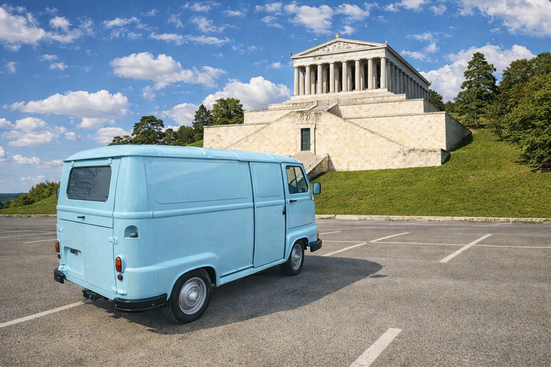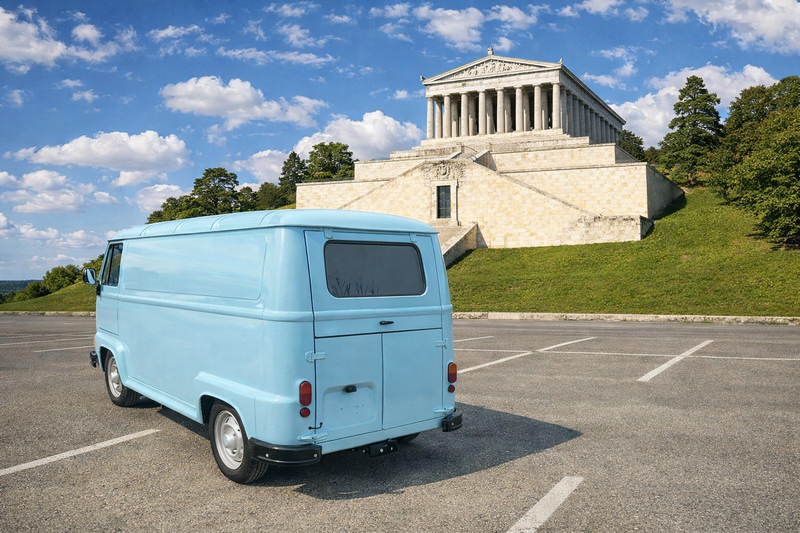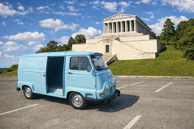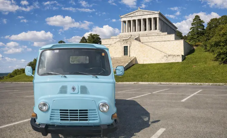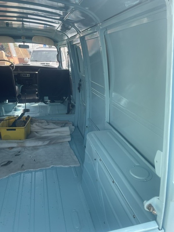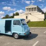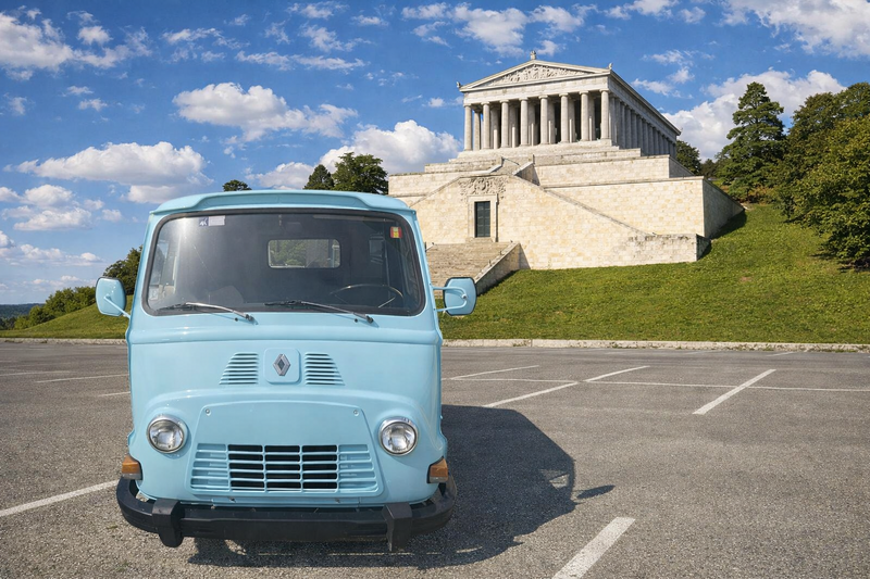 Angeboten wird eine komplett restaurierte Renault-Estafette, hellblau, Originalfarbe