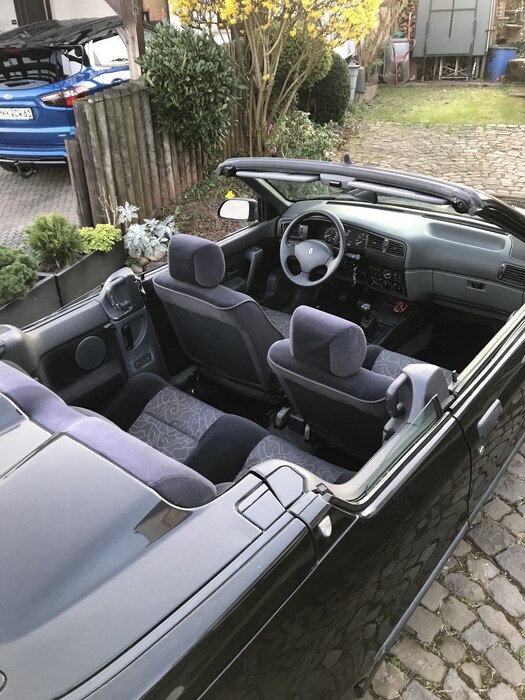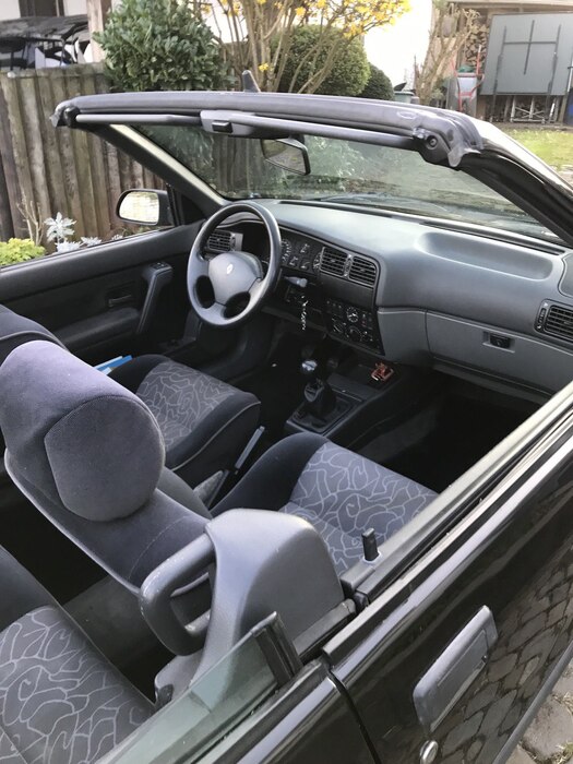 R19 Werkscabrio Karman Ghia, Top Gepflegt, Unterboden Fluid Film Versiegelt, kein Rost, Garagenwagen seit 30 Jahren, Fuchsfedern (Sportfahrwerk), Bereifung 2005/50 R15, Leichtmetallfelgen