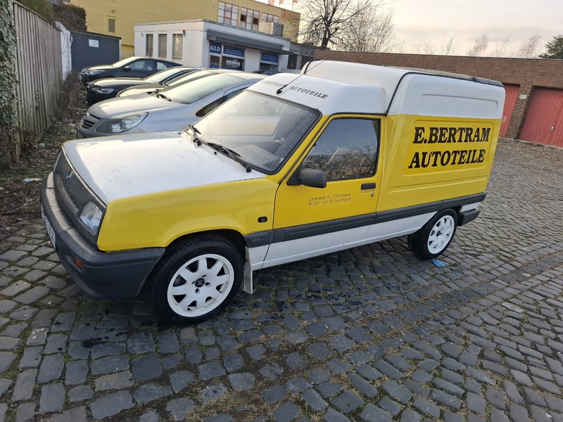 seit 1994 in 2.Hand, seit 2003 nur noch privat genutzt, Speedline Felge 7Jx15 vom Clio Williams (eingetragen), Michelin CrossClimate 80%, große Bremse vom R19 2.0, LKW/Jahressteuer €90,- Leder Sportlenkrad vom R5 Turbo (2022 neu beledert), Technisch auf Stand, Karosse braucht etwas Zuwendung (nicht akut), Radio/CD mit USB&FSE, 2024 Querlenker, Stoßämpfer, Scheinwerfer, Bremse vorn neu,