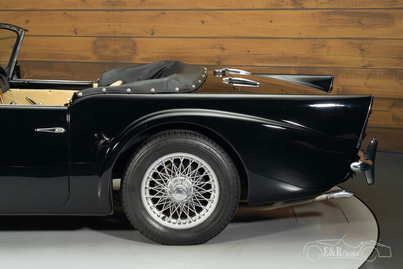 Daimler SP250 Dart LHD | Restauriert | Automatik | Hardtop | 1961 Highlights: - Fotobericht der Restaurierung vorhanden - 2.5-Liter-V8-Motor mit Automatikgetriebe - Seltenes Hardtop + Softtop - Nur 2 Vorbesitzer - Originales europäisches Auto Linksgelenkter Daimler SP250 Dart zu verkaufen Wir bieten diesen schönen Daimler SP250 Dart aus dem Jahr 1961 zum Verkauf an. Vom Daimler SP250 wurden nur 2645 Exemplare gebaut und der Klassiker, den wir hier anbieten, ist eine originale Linkslenkerversion, die neu in den Niederlanden ausgeliefert wurde. Der Klassiker wurde in der Vergangenheit Body-Off-restauriert und die Restaurierung ist in einem ausführlichen Fotobericht festgehalten. Es liegen auch verschiedene Rechnungen der durchgeführten Wartungen vor. Der Daimler hatte nur 2 Vorbesitzer. Er wird von dem leistungsstarken 2.5-Liter-V8-Motor angetrieben, der mit einem Automatikgetriebe gekoppelt ist. Das Automatikgetriebe wurde später eingebaut und ist bei einem Dart sehr selten. Daimler SP250 Dart mit seltenem Hardtop zu verkaufen Ein Daimler Dart ist an sich schon eine seltene Erscheinung, aber der, den wir hier anbieten, ist wegen seines seltenen Hardtops noch spezieller. Das Hardtop sieht auf dem Klassiker großartig aus und betont die besonderen Kurven des Dart. Darüber hinaus ist das Auto mit Speichenrädern und einem schwarzen Softtop ausgestattet. Die schwarze Lackierung sieht auf dem Daimler großartig aus und lässt das Chrom hervorstechen. Der Innenraum ist mit beiger Lederpolsterung mit schwarzer Paspelierung und einem Moto-Lita-Sportlenkrad ausgestattet. Daimler SP250 Dart zu verkaufen bei E&R Classics Suchen Sie einen Daimler SP250 Dart von 1961? Dann hinterlassen Sie Ihre Daten über das Kontaktformular auf dieser Seite oder rufen Sie direkt unter +31 416 751 393 an. Unsere Verkäufer beantworten gerne alle Ihre Fragen oder machen sogar ein persönliches Shop-Video für Sie. Wir bieten Unterstützung beim Transport. Wir liefern Ihnen Ihr Auto mit Tüv, H-Kennzeichen und Fahrzeugbrief, gegen Aufpreis. Sie zahlen keine Importsteuer mehr. Auch können Sie das Fahrzeug bei unsere Finanzierungspartner finanzieren.