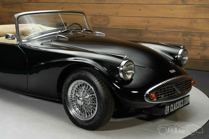 Daimler SP250 Dart | Body-off restauriert | 1960 Highlights: - Body-off restauriert im Jahr 2015 - Fotobericht der Restaurierung verfügbar - Nur 7.000 km nach der Restaurierung gefahren - 2.5-Liter-V8-Motor mit manuellem 4-Gang-Getriebe Body-off restaurierter Daimler SP250 Dart zu verkaufen Der Daimler SP250, auch bekannt als Dart, ist ein seltener britischer Sportwagen mit einer reichen Geschichte. Dieses Modell wurde zwischen 1959 und 1964 hergestellt, wobei nur 2.645 Exemplare produziert wurden. Das Auto wird von dem leistungsstarken 2.5-Liter-V8-Motor angetrieben, der mit einem manuellen 4-Gang-Getriebe gekoppelt ist. Dank seiner fortschrittlichen Fiberglaskarosserie war der SP250 seinerzeit ein technisches Meisterwerk. Dieses spezielle Exemplar wurde 2015 von einem Dart-Spezialisten in den Niederlanden Body-off restauriert, mit einem ausführlichen Fotobericht als Beweis. Seit der Restaurierung hat das Auto nur 7.000 Kilometer zurückgelegt, was seinen hervorragenden Zustand bestätigt. Schwarzer Daimler SP250 Dart zu verkaufen Dieser Daimler SP250 strahlt mit seinem tiefschwarzen Lack, Chrom und wunderschönen Chromspeichenrädern pure Eleganz aus. Die kontrastierende beige Innenausstattung und das passende Verdeck sorgen für ein raffiniertes und stilvolles Erscheinungsbild. Der Innenraum ist ein perfektes Beispiel für klassischen britischen Luxus mit Aufmerksamkeit zum Detail und Komfort. Dieses Auto verbindet zeitlose Schönheit mit Fahrspaß und ist damit die perfekte Wahl für Liebhaber einzigartiger Klassiker. Einen Daimler SP250 Dart kaufen? Sie suchen einen Daimler SP250 Dart aus dem Jahr 1960? Dann hinterlassen Sie Ihre Daten über das Kontaktformular auf dieser Seite oder rufen Sie direkt unter +31 416 751 393 an. Unser Verkaufspersonal beantwortet gerne alle Ihre Fragen oder erstellt sogar ein persönliches Shop-Video für Sie. Wir bieten Unterstützung beim Transport. Wir liefern Ihnen Ihr Auto mit Tüv, H-Kennzeichen und Fahrzeugbrief, gegen Aufpreis. Sie zahlen keine Importsteuer mehr. Auch können Sie das Fahrzeug bei unsere Finanzierungspartner finanzieren.