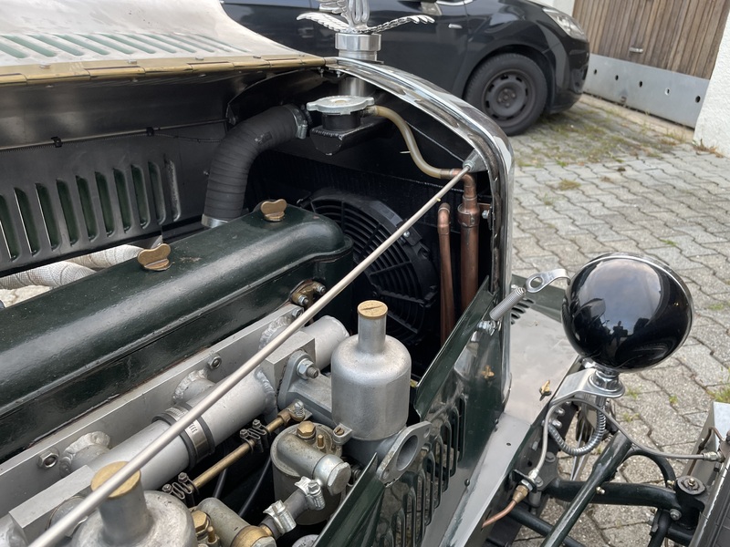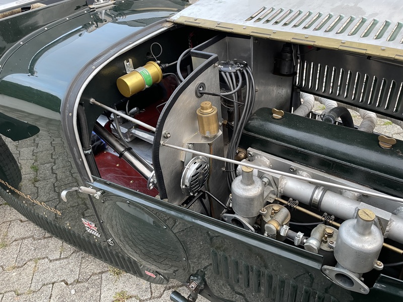 6 Zylinder Reihenmotor, obenliegende Nockenwelle, komplett neu aufgebaut und leistungsgesteigert, Phoenix Kurbelwelle, Renntrommelbremsen, Aluminiumkühler, Ölkühler...durch den bekannten Wolseleyspezialisten John Seber, nach dem Import nach Deutschland strassenzulassungsfähig gemacht und überarbeitet.