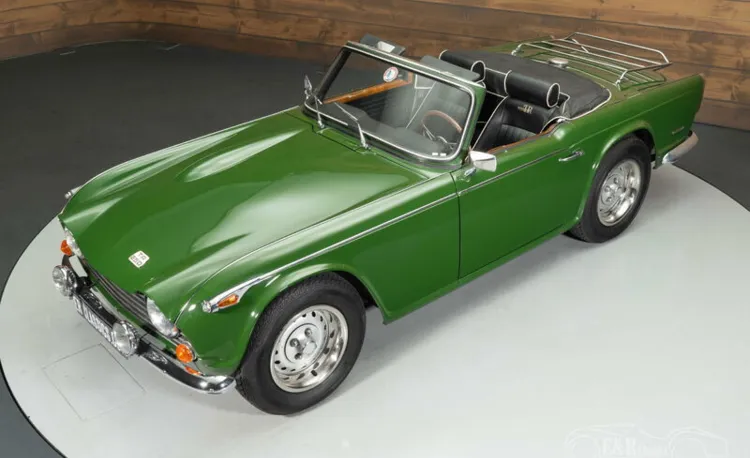 Triumph TR250 | Guter Zustand | 1967 Highlights: - 2,5-Liter-6-Zylinder-Motor - 4-Gang-Schaltgetriebe - Schwarzes Stoffverdeck - Guter Zustand Triumph TR250 in gutem Zustand zu verkaufen Der Triumph TR250 von 1967 ist ein seltener britischer Roadster, der nur ein Jahr lang produziert wurde – ein echtes Sammlerstück. Unter der Motorhaube arbeitet der kräftige 2,5-Liter-6-Zylinder-Motor, gekoppelt mit einem 4-Gang-Schaltgetriebe. Diese Kombination sorgt für das authentische Fahrgefühl, das die TR-Serie weltweit so beliebt gemacht hat. Der TR250 vereint den klassischen Charme des TR4 mit der technischen Raffinesse des TR6 und ist bekannt für seine harmonische Leistungsentfaltung und seinen charakteristischen Motorsound. Grüner Triumph TR250 zu verkaufen Dieser Triumph ist in grünem Lack ausgeführt, der hier und da leichte Gebrauchsspuren zeigt, und bildet einen schönen Kontrast zum sportlichen schwarzen Interieur mit weißer Kederung. Schalensitze, Holzarmaturenbrett und Sportlenkrad betonen den britischen Charakter. Details wie das schwarze Stoffverdeck, Zusatzscheinwerfer, elegante Chromstoßstangen und der praktische Gepäckträger unterstreichen den klassischen Stil. Ein wunderschöner Roadster, perfekt für sonnige Ausfahrten und Oldtimer-Events. Triumph TR250 kaufen? Suchen Sie einen Triumph TR250 aus dem Jahr 1967? Hinterlassen Sie Ihre Kontaktdaten über das Formular auf dieser Seite oder rufen Sie uns direkt unter +31 416 751 393 an. Unser Verkaufsteam beantwortet gerne alle Ihre Fragen oder erstellt sogar ein persönliches Shop-Video für Sie. Wir bieten Unterstützung beim Transport. Wir liefern Ihnen Ihr Auto mit Tüv, H-Kennzeichen und Fahrzeugbrief, gegen Aufpreis. Sie zahlen keine Importsteuer mehr. Auch können Sie das Fahrzeug bei unsere Finanzierungspartner finanzieren.