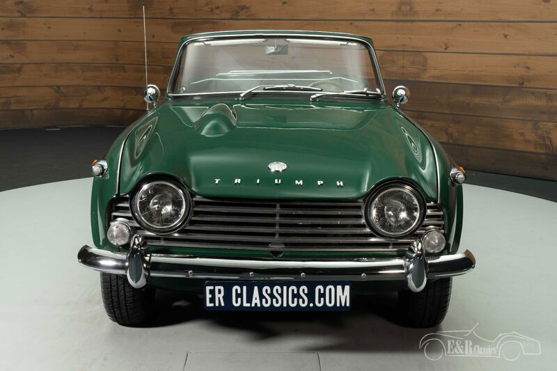 Triumph TR4 | Restauriert | Guter Zustand | 1967 Highlights: - Restauriert - British Racing Green - Schwarzes Verdeck - 2138-cm³-4-Zylinder-Motor - 4-Gang-Schaltgetriebe Restaurierter Triumph TR4 zu verkaufen Der Triumph TR4 von 1967 ist eine wahre Ikone unter den britischen Sportwagen. Dieses von Triumph als Nachfolger des TR3 entwickelte Modell verbindet klassische Eleganz mit sportlicher Leistung. Dieser TR4 ist mit dem leistungsstarken 2138-cm³-4-Zylinder-Motor ausgestattet, gekoppelt mit einem 4-Gang-Schaltgetriebe, was ein dynamisches Fahrerlebnis garantiert. Das Modell wurde in der Vergangenheit restauriert und ist in gutem Zustand. Triumph TR4 in British Racing Green zu verkaufen Das Äußere dieses TR4 ist im ikonischen British Racing Green lackiert, einer Farbe, die perfekt zum sportlichen und zeitlosen Erscheinungsbild des Autos passt. Das schwarze Verdeck sorgt für einen stilvollen Kontrast und sorgt dafür, dass Sie dieses Cabriolet bei jedem Wetter genießen können. Der verchromte Gepäckträger und die Stahlfelgen mit Chromdeckeln verstärken den klassischen Look. Ebenso beeindruckend ist der Innenraum mit einer Kombination aus schwarzer Polsterung mit weißer Paspelierung und einem schönen Armaturenbrett aus Holz. Das Sportlenkrad verleiht einen zusätzlichen Hauch von Eleganz und Authentizität, was den Fahrspaß noch weiter steigert. Triumph TR4 kaufen? Sie suchen einen Triumph TR4 aus dem Jahr 1967? Dann hinterlassen Sie Ihre Daten über das Kontaktformular auf dieser Seite oder rufen Sie direkt unter +31 416 751 393 an. Unsere Vertriebsmitarbeiter beantworten gerne alle Ihre Fragen oder erstellen sogar ein persönliches Shop-Video für Sie. Wir bieten Unterstützung beim Transport. Wir liefern Ihnen Ihr Auto mit Tüv, H-Kennzeichen und Fahrzeugbrief, gegen Aufpreis. Sie zahlen keine Importsteuer mehr. Auch können Sie das Fahrzeug bei unsere Finanzierungspartner finanzieren.