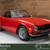 Triumph TR6 | Restauriert | Hardtop | Guter Zustand | 1971 Höhepunkte: - Fotobericht der Restaurierung verfügbar - 2500-cm³-6-Zylinder-Motor - 4-Gang-Schaltgetriebe - Hardtop und Softtop vorhanden Restaurierter Triumph TR6 zu verkaufen Wir bieten diesen wunderschönen Triumph TR6 aus dem Jahr 1971 zum Verkauf an. Dieser Triumph stammt von einem namhaften Kunden von E&R Classics, der den Oldtimer gegen einen anderen eingetauscht hat. Der Triumph TR6 wurde in der Vergangenheit restauriert. Die Restaurierung wurde in einer ausführlichen Fotoreportage dokumentiert. Angetrieben wird es von einem leistungsstarken 2500-cm³-6-Zylinder-Motor, der mit einem 4-Gang-Schaltgetriebe gekoppelt ist. Triumph TR6 mit Hardtop zu verkaufen Der Triumph TR6, den wir hier zum Verkauf anbieten, ist wirklich toll anzusehen. Er hat eine wunderschöne rote Lackierung, die perfekt zu diesem Oldtimer aus den 1970er Jahren passt und sich sehr gut mit dem Chrom kombinieren lässt. Es steht auf einem Satz lackierter Speichenräder, die einen schönen Kontrast zum Lack bilden. Es ist außerdem mit einem Gepäckträger und einer Windschutzscheibe ausgestattet, die für zusätzlichen Komfort beim Fahren sorgt. Das Einzigartige an diesem TR6 ist, dass er neben einem schwarzen Verdeck auch ein Hardtop in der gleichen Farbe wie die Karosserie hat. Der schwarze Innenraum ist in einem gepflegten Zustand und verfügt über bequeme Sitze mit Stoff- und Kunstlederbezug. Das Armaturenbrett und das Lenkrad aus Holz runden den klassischen Look ab. Möchten Sie Triumph TR6 kaufen? Suchen Sie einen Triumph TR6 von 1971? Dann hinterlassen Sie Ihre Daten über das Kontaktformular auf dieser Seite oder rufen Sie direkt unter +31 416 751 393 an. Unsere Vertriebsmitarbeiter beantworten gerne alle Ihre Fragen oder erstellen sogar ein persönliches Shop-Video für Sie. Wir bieten Unterstützung beim Transport. Wir liefern Ihnen Ihr Auto mit Tüv, H-Kennzeichen und Fahrzeugbrief, gegen Aufpreis. Sie zahlen keine Importsteuer mehr. Auch können Sie das Fahrzeug bei unsere Finanzierungspartner finanzieren.