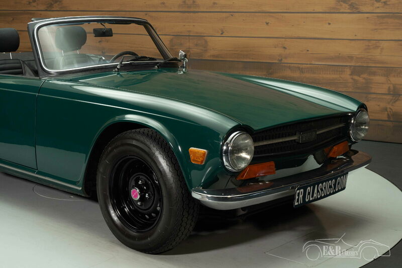 Triumph TR6 | Restauriert | Overdrive | Hardtop | 1974 Highlights: - In den 1990er Jahren restauriert - Wartungshistorie bekannt - 32 Jahre im Besitz eines Eigentümers - Inklusive Hardtop - 2,5-Liter-Reihensechszylinder mit 4-Gang-Schaltgetriebe und Overdrive Triumph TR6 mit Wartungshistorie zu verkaufen Dieser Triumph TR6 aus dem Jahr 1974 ist ein echtes Liebhaberfahrzeug mit einer spannenden Geschichte. Das Modell ist bekannt für seine kraftvolle Leistung und seinen zeitlosen britischen Charme. Angetrieben wird der Wagen von einem 2,5-Liter-Sechszylindermotor in Kombination mit einem 4-Gang-Schaltgetriebe und Overdrive. Dieser spezielle TR6 ist bestens dokumentiert: Der Vorbesitzer bewahrte die gesamte Wartungshistorie auf und besaß das Fahrzeug stolze 32 Jahre lang. Die Restaurierung erfolgte in den 1990er Jahren. Mit Details wie einer Edelstahlauspuffanlage und SPAX verstellbaren Stoßdämpfern bietet dieser Klassiker nicht nur Nostalgie, sondern auch modernen Fahrkomfort. Triumph TR6 in Mallard Green zu verkaufen Die Karosserie des TR6 ist in der Originalfarbe Mallard Green gehalten – ein tiefer, klassischer Farbton, der perfekt zum sportlichen Charakter des Wagens passt. Der Triumph wird mit einem schwarzen Softtop sowie einem passenden Hardtop geliefert und ist damit für jede Jahreszeit geeignet. Schwarze Stahlfelgen verleihen ihm einen kraftvollen Look, der einen schönen Kontrast zum Lack bildet. Im Innenraum erwarten Sie luxuriöse schwarze Sitze, die perfekt mit dem Holzarmaturenbrett und den Chromdetails harmonieren. Das Interieur strahlt britische Eleganz aus und passt wunderbar zum Exterieur – eine Kombination, die diesen TR6 zu einem zeitlosen Klassiker macht. Triumph TR6 kaufen? Suchen Sie einen Triumph TR6 aus dem Jahr 1974? Hinterlassen Sie Ihre Kontaktdaten über das Formular auf dieser Seite oder rufen Sie uns direkt unter +31 416 751 393 an. Unser Verkaufsteam beantwortet gerne Ihre Fragen oder erstellt ein persönliches Shop-Video für Sie. Wir bieten Unterstützung beim Transport. Wir liefern Ihnen Ihr Auto mit Tüv, H-Kennzeichen und Fahrzeugbrief, gegen Aufpreis. Sie zahlen keine Importsteuer mehr. Auch können Sie das Fahrzeug bei unsere Finanzierungspartner finanzieren.