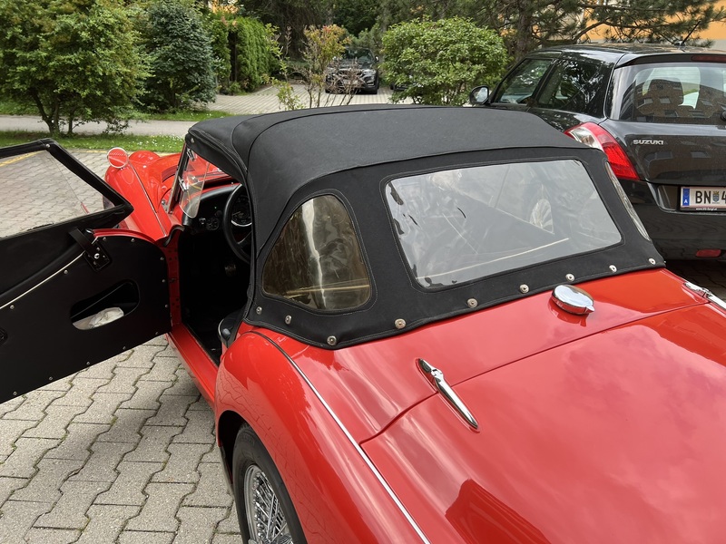 Zubehörteile wie das Serienlenkrad, das Kunststoff-Roadsterverdeck und die Spritzdecke, sind vorhanden.