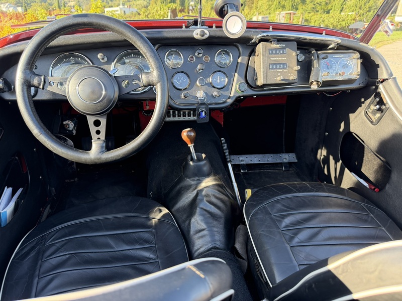 Das Interieur ist mit einem Moto-Lita 13-Zoll-Lederlenkrad und einem Sparco 4-Punkt-Sicherheitsgurt für Fahrer und Beifahrer ausgestattet. Zusätzlich befindet sich eine Beifahrerfußstütze, zwei Breitstrahler, effiziente Scheibenwischer mit einer neuen Scheibenwaschpumpe, eine Beifahrerleselampe und ein Marderschutz im Fahrzeug.