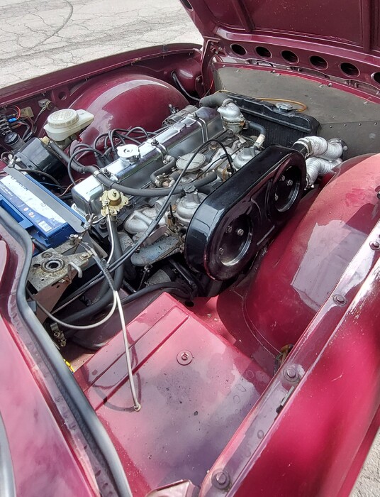 Triumph TR 6, BJ.1969, Damson Red, KM 29733 nach kompletter Motorrevision, TÜV 6/27, Zustand lt.Gutachten 2 +, Overdrive, Speichenräder,  VB € 26.500,-