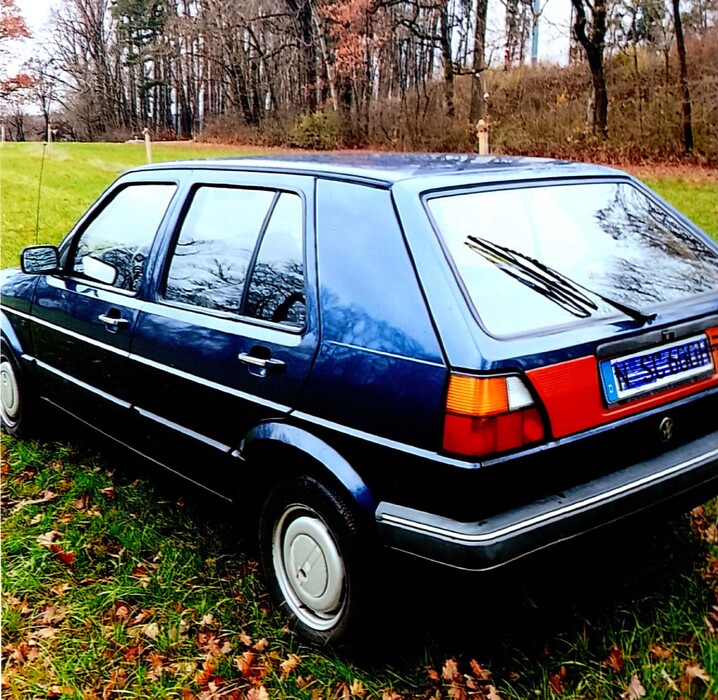 Golf II, Bj.87, 4-Gang, 53 kW, 1.6L Benzin, H-Kennz., 79.000 km, Lack original, Scheckheft, 4 Türen, blau, VB € 2.100,-, Mobil: 0176/41681112