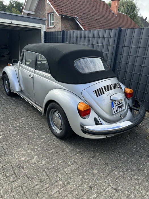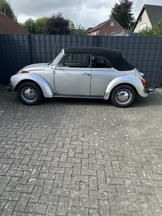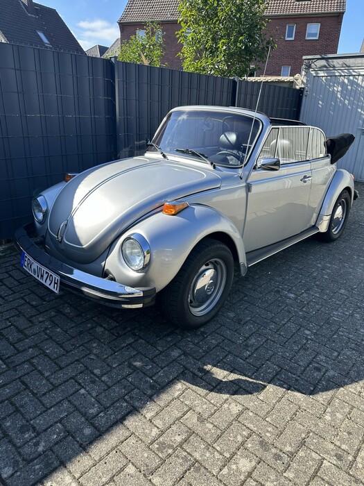 Sehr schönes Käfer Cabrio zu verkaufen. Absolut rostfrei. Der Wagen wurde in 2015 von einem örtlichen VW-Autohaus-Inhaber aus den USA nach Deutschland geholt und lief vorher in L.A. mit prominentem Vorbesitz. In Deutschland wurde der Wagen in der Originalfarbe neu lackiert, Hohlraumversiegelt und bekam ein neues Komplettverdeck in Sonnenlandqualität. Darüber hinaus wurde fast alle Gummis (Scheiben, Türen, Fenster usw.) sowie diverse Teile (Außenspiegel, Felgen, Fahrwerkskomponenten usw.) ersetzt, bis er so aussah wie jetzt und technisch auf dem neuesten Stand war. Man kann mit ihm problemlos im Verkehr mitschwimmen und stellt kein Hindernis dar. Laut Zulassungsbescheinigung handelt es sich um einen Typ 15, also bei Karmann gebaut und für den US-Markt mit der 1600er Maschine mit Einspritzung und 50 PS versehen. Keinerlei Ölverbrauch, der Motor ist trocken. Es liegt ein Classic Data Kurzgutachten aus 2024 vor mit einem Wiederbeschaffungswert von 35 TEUR und Marktwert von 30,5 TEUR.