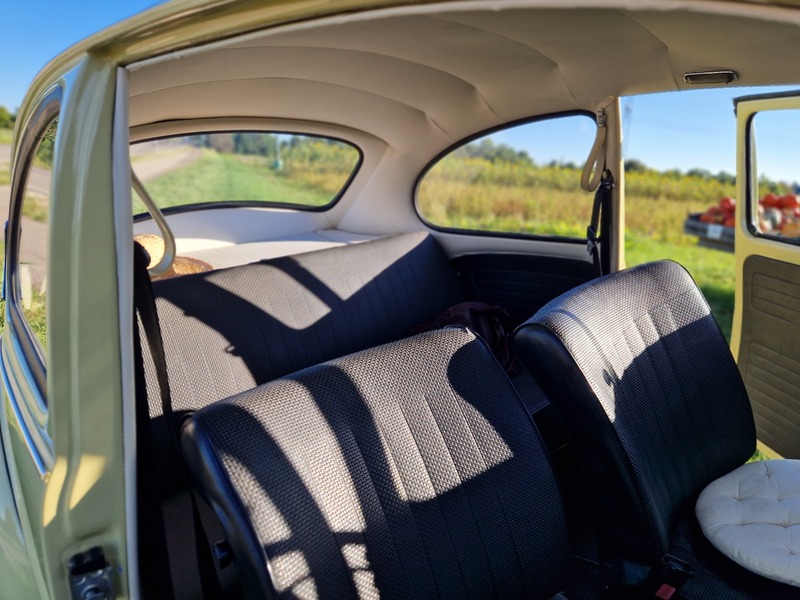 Nach 55 Jahren finden sich natürlich kleinere Gebrauchsspuren, z.B. am Fahrersitz....aber insgesamt ist der Käfer in einem wirklich guten Zustand.