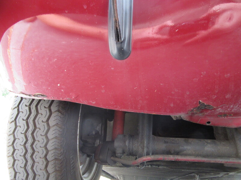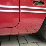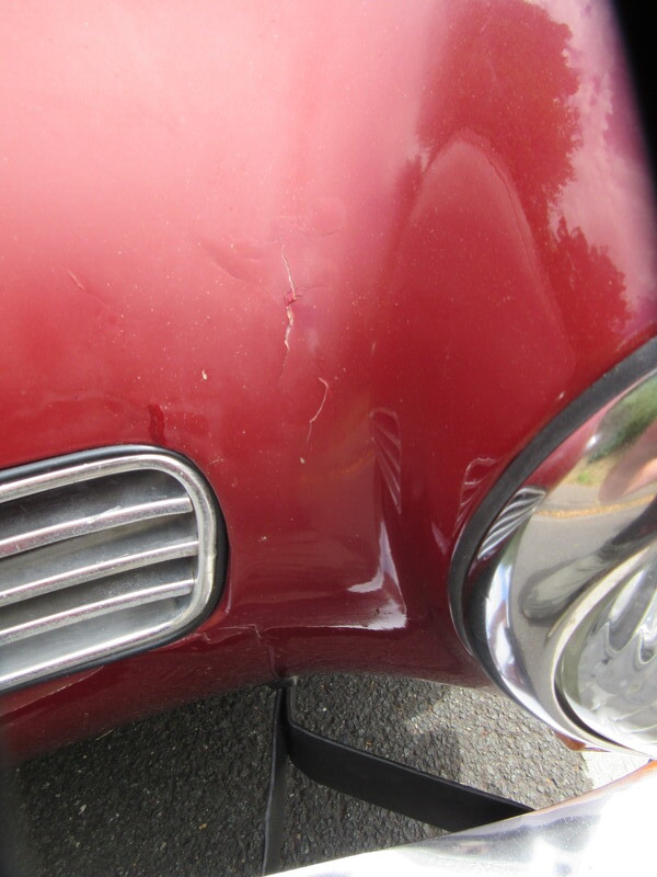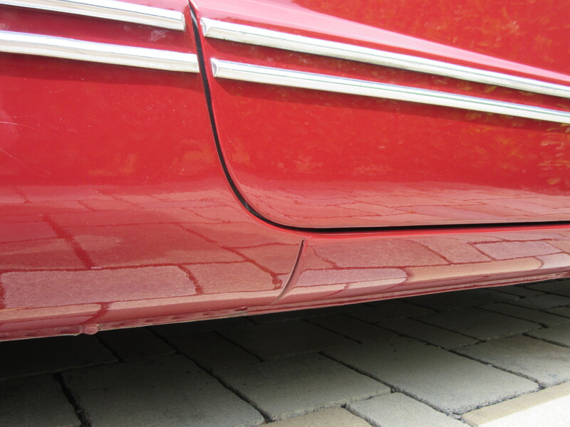 Die Karosse ist in einem sehr guten Zustand (35 Jahre kein Winter), der empfindliche Vorderwagen, die Luftkanäle, Lampentöpfe sind in klasse Zustand. Die Lackierung ist teilweise matt ( Dach, Vorderwagen), die Chromteile im Originalzustand  mit leichter Patina. Kleine Durchrostung an der Kante unter der Stoßstange vorne.