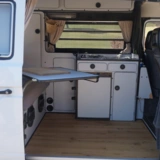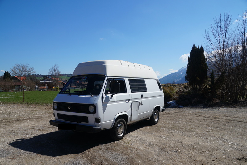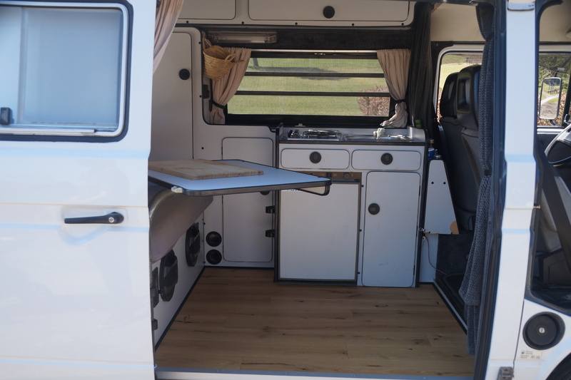 Wir trennen uns aufgrund von Familienzuwachs von unserem VW T3 Camper von 1988, der uns in den letzten 6 Jahren die schönsten Urlaube beschert hat! Der Bulli mit Hochdach (Stehhöhe im Innenraum!) ist professionell ausgebaut worden. Der Ausbau ist an Westfalia angelehnt und bietet zwei Schlafplätze sowie eine Küchenzeile mit Spüle, zwei Gaskochfeldern sowie einem Elektrolux-Kühlschrank. Eine Standheizung von Truma ist ebenfalls vorhanden, allerdings defekt und benötigt dementsprechend (falls sie genutzt werden soll) eine Reparatur.