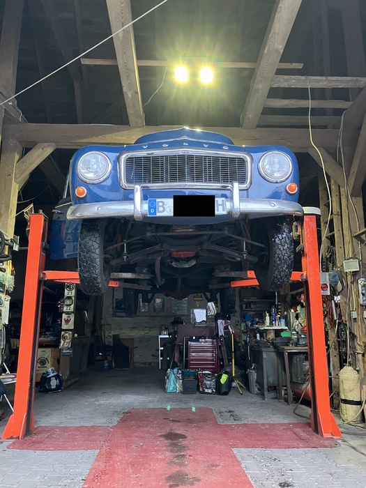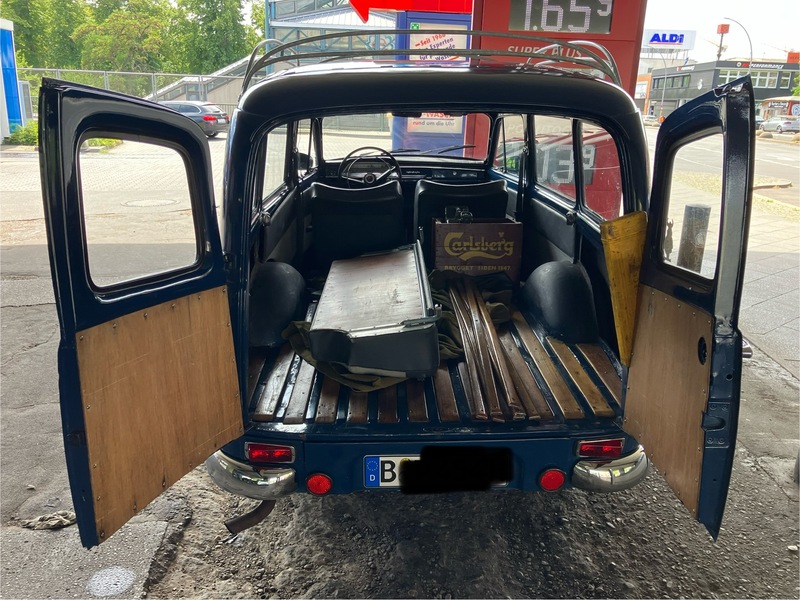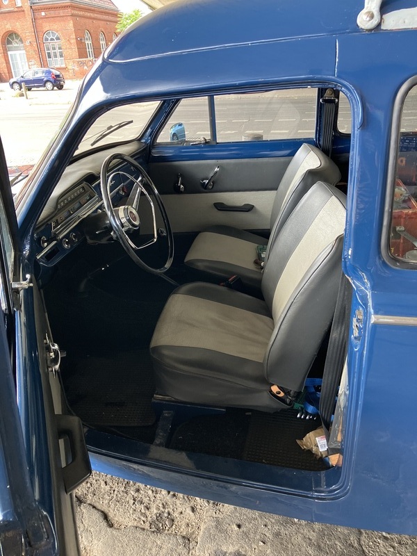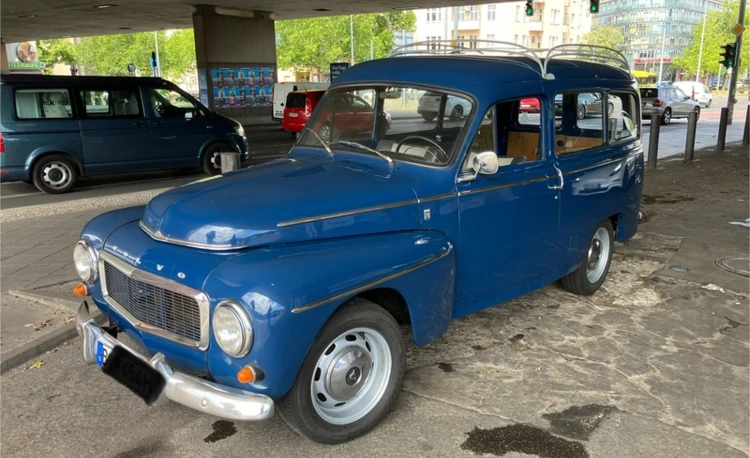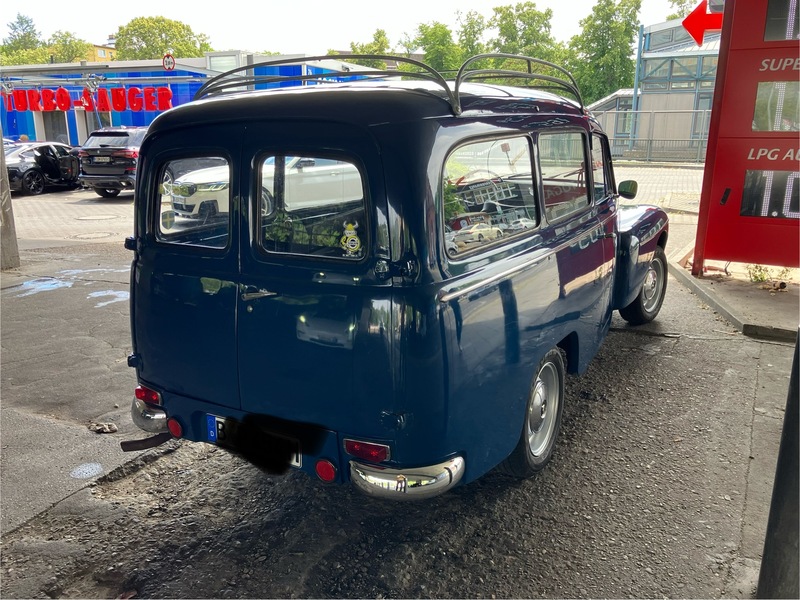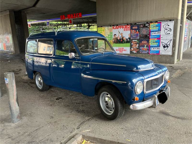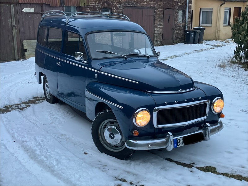 Volvo Duett, Herrgårdsvogn (Kombi), Bj. 07/1968, B18, 75PS u. Getr. M40 (sehr gut), angem., zugel., H-Kennz., schm. Kennz. (460X110) v+h eingetr., Lenkradschl., Winterr. 165/15 auf Standardfelgen 4,5X15", lack. 2007 in Midnattsblå (n. perfekt), Restarbeiten (Dachhimmel u. Kleinigk.). Innenausst. hellgrau Kunstl. Dazu erh. (VB u. n. eingetr.) Sommerr. 185/80 R15 auf 5 1/2"-Felgen (KPZ 613017, entspr. 6136 B), NOS Stoßst. h., AHK Westfalia (1970), NOS Spritzlappen + Halter, Dachreling (Tackräcke) Sonderanf. verzkt., Motorh., Hecktür, Getr. M40 + M41, Lenkgetr., Glas-Benzinp. uvm.