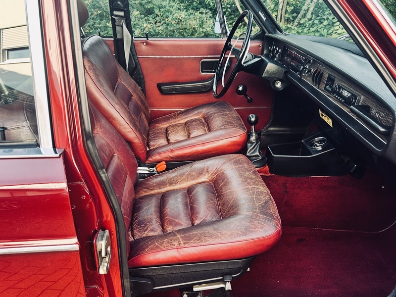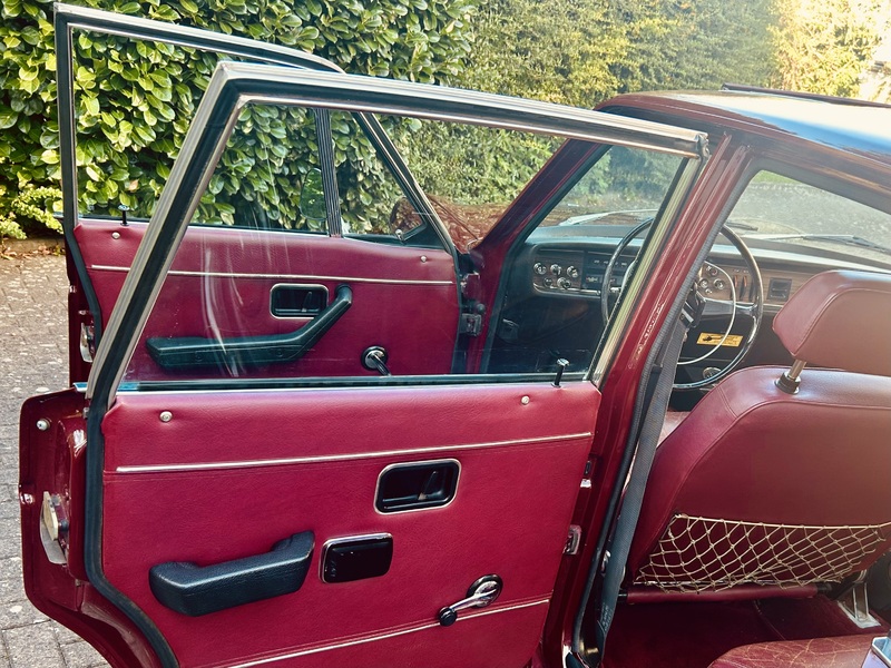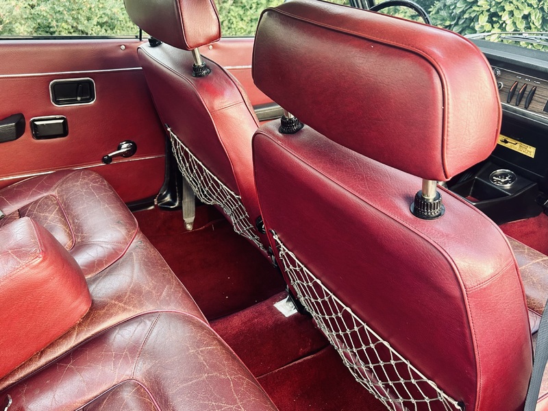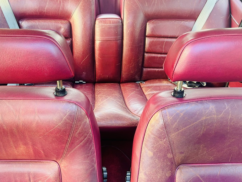 Ausstattung: Nebelscheinwerfer, Automatikgurte für die vorderen Sitzplätze und Standard-Sitzgurte hinten, grün getöntes Fensterglas, beheizbare Heckscheibe, Felgenzierringe und Chromzierleisten. Bordeauxrot-farbene Ledersitze mit hinterer Mittelarmstütze, Ablagefach mit Zeituhr auf der Mittelkonsole.