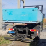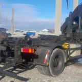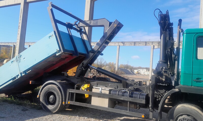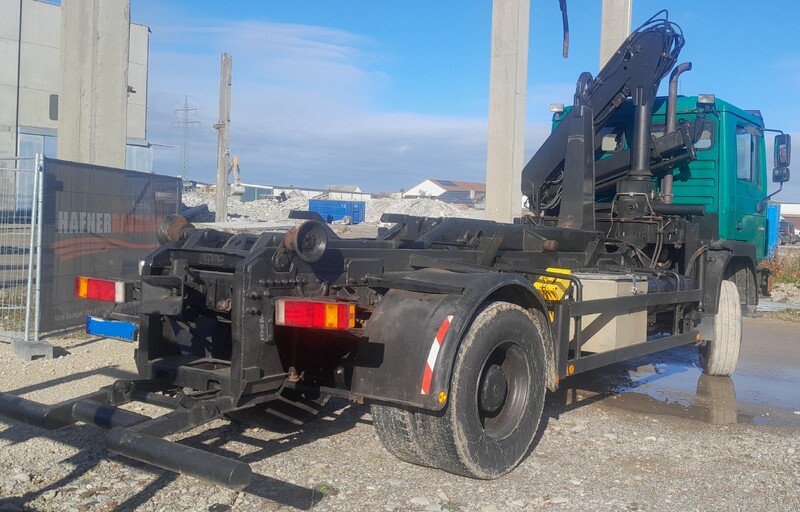 Der Hakenlift ist für Container bis ca. 5,5 m Länge geeignet. Das Leergewicht beträgt 9.200 kg, die Nutzlast liegt bei 7.365 kg. Der Radstand beträgt ca. 4,5 m, die Federung ist klassisch Blatt/Blatt ausgeführt. Die Reifen haben noch etwa 60 % Profil (M+S).