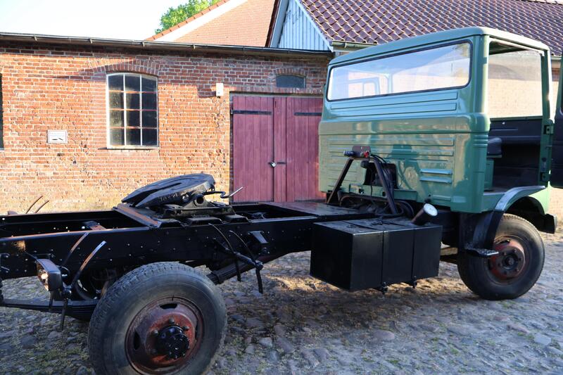 • Eingetragen als Sattelzugmaschine, Sattelplatte kann problemlos entfernt werden – ideal als Basis für ein individuelles Camper- oder Wohnmobilprojekt, hohe Nutzlast, mit der alten Klasse 3 oder C1 fahrbar, geringe Laufleistung da er nur als Transporter in einer Werft lief.
