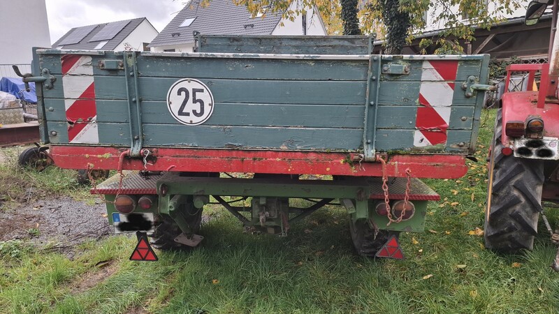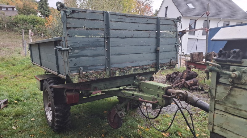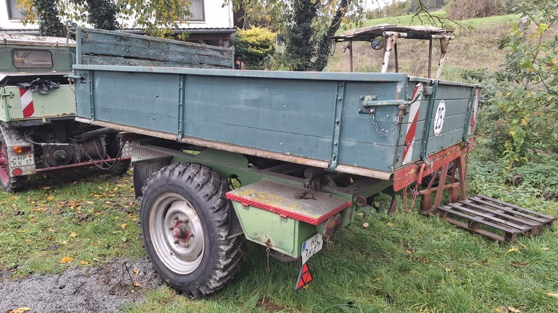 Einachser 3-Seiten Kipper Bj. 1970 mit Seitenwanderhöhungen. Zuggabel Herbert ZGD 1900 für Bundeswehr.
