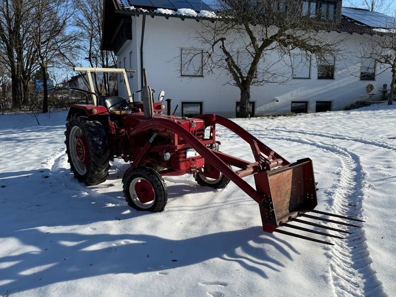 4 Zylinder, Wasserkühlung, 36 PS, 19 km/h, mit Kraftheber, Heckzapfwelle.