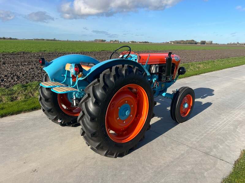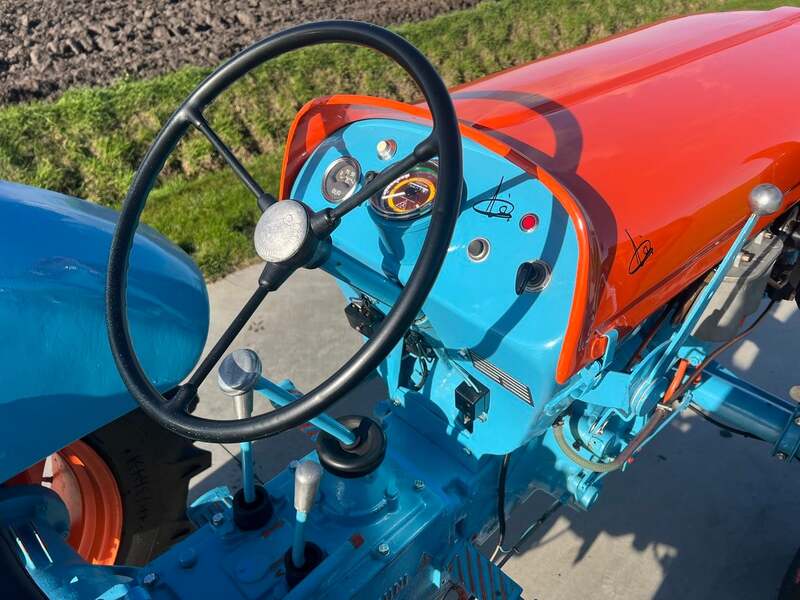 Zoals de foto’s laten zien, is onze tractor gerestaureerd, waarbij de kenmerkende oranje-blauwe livery behouden is en tegelijk zijn historische betekenis en praktische functionaliteit behoudt.