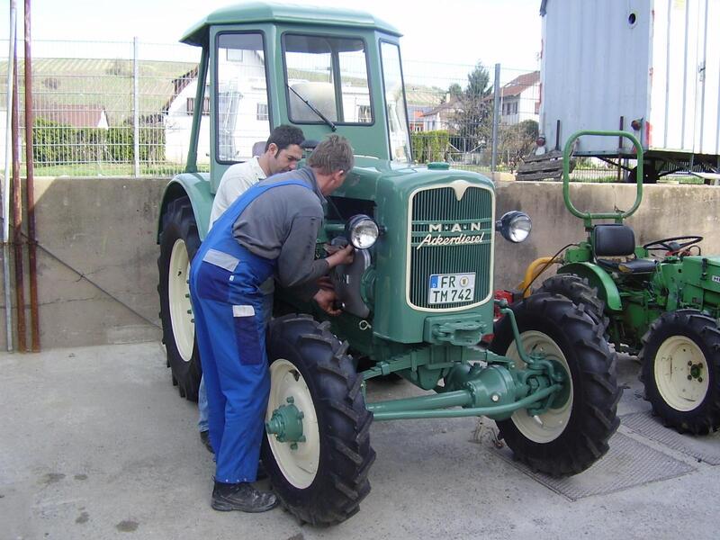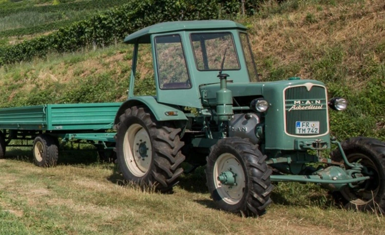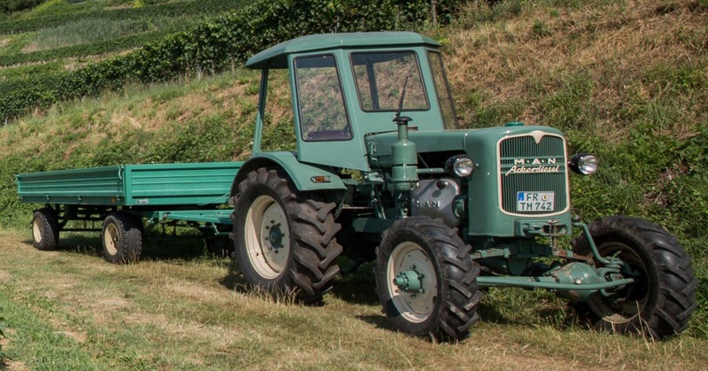 Seltenes Liebhaberstück aus Familienbesitz inkl. 2-Schar-Wendepflug & 2-Achs-Anhänger (starr) in orig. MAN-Optik (Grün/Creme). Reifen neuwertig.