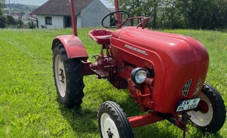 WINTERPREIS: Verkaufe schweren Herzens unseren kleinen Ferdinand. Schöner authentischer Porsche Traktor. Der eine Zylinder springt zuverlässig an und dann geht die Entschleunigung los. Schöne Sitze, technisch völlig in Ordnung. Nahezu neue Reifen. Tachostand unbekannt, da kein Tacho bei 19km/h Höchstgeschwindigkeit