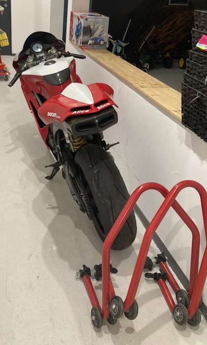 Reifenwärmer u. Motorradheber (vorne u. hinten) sowie neues Batterieladegerät sind im KP inkludiert. Batterie wurde im April 25 erneuert.