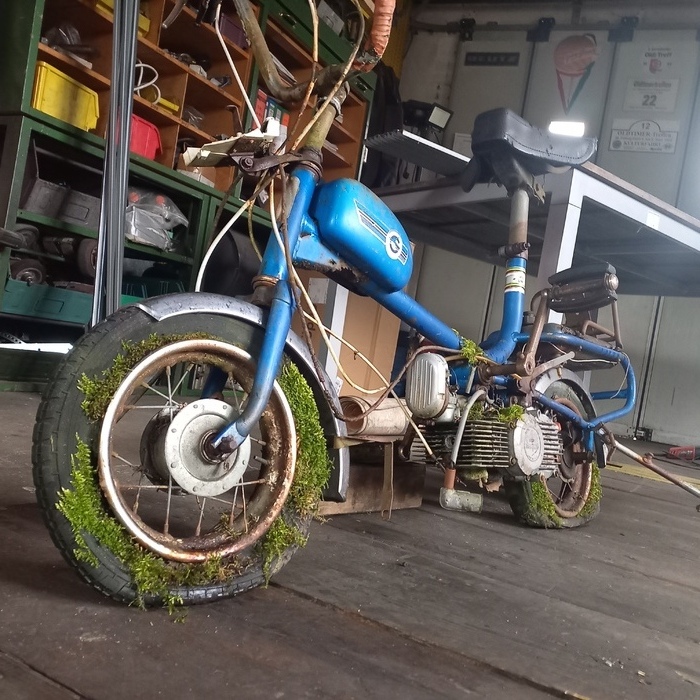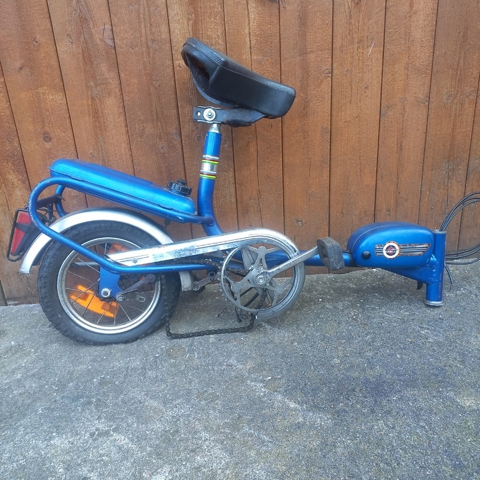 Garelli Baby Moskito Typ Miniped: 1x Gartenfund, nahezu komplett, Motor fest. zerlegt; 1x Teileträger nicht komplett, guter Zustand, Tank innen rostfrei, beide Bj.74, ohne Papiere, zu verk., VB € 120,-, Tel. 01522/6193355