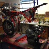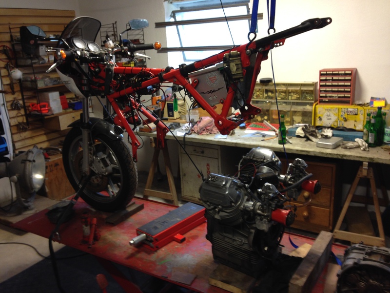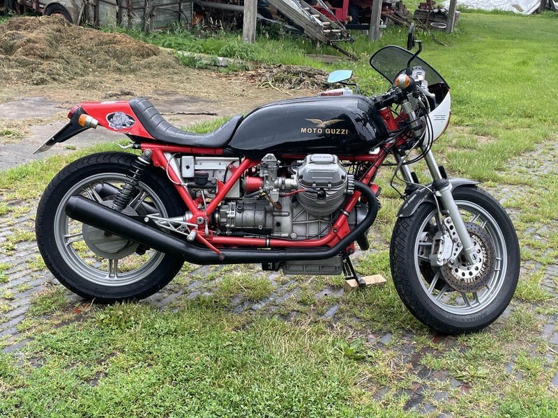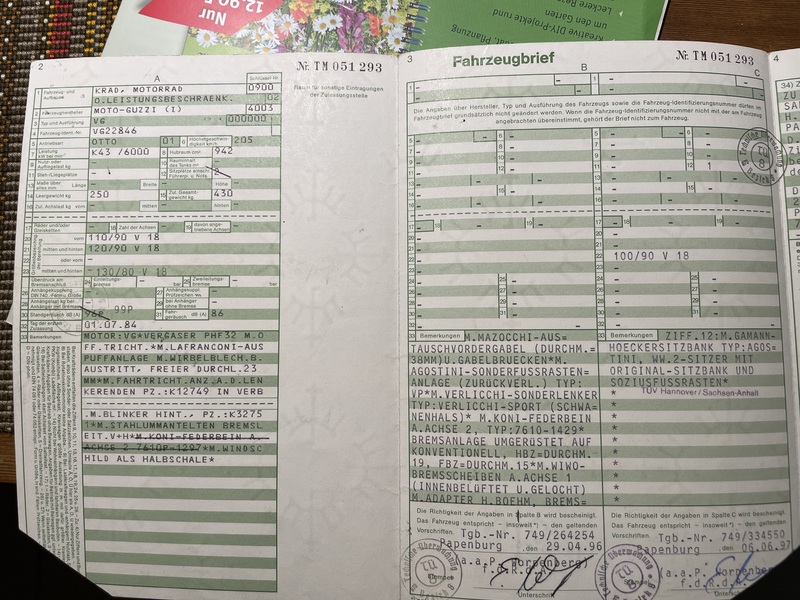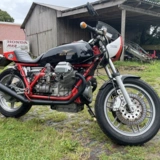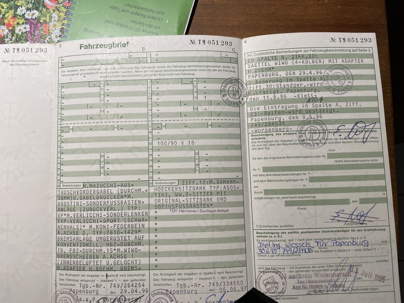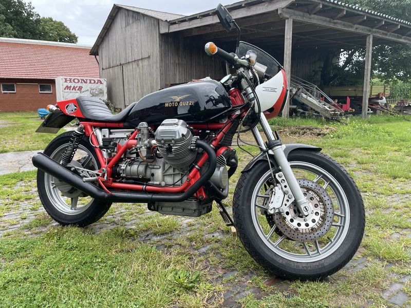 Individueller Caferacerumbau mit diversen Briefeintragungen, zB. Gabel, Bremsen, Motor, Schalldämpfer 99dB, Vergaser offen, usw.