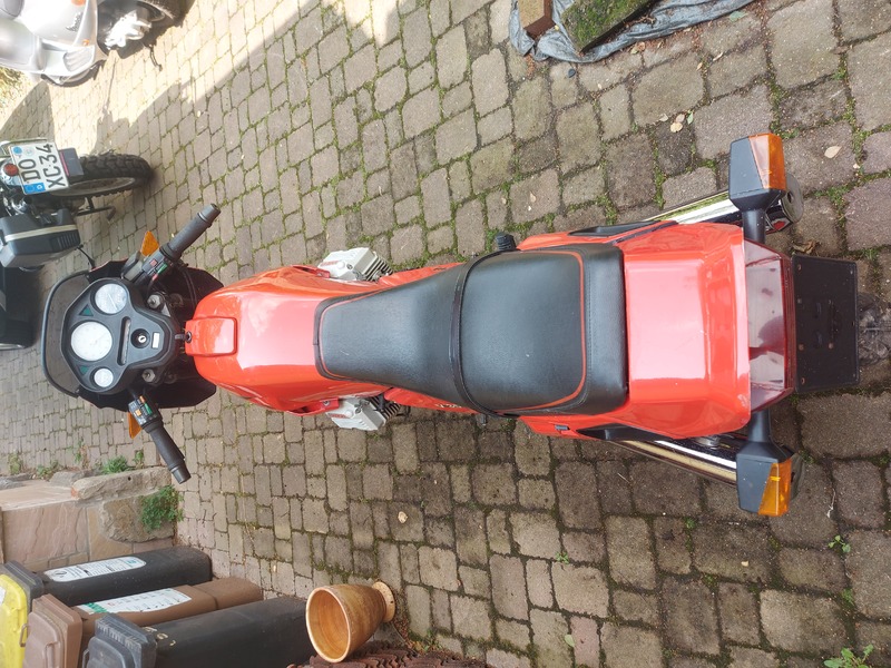 Schönes 4-Ventiler Schätzchen meiner Frau. Kam 1996 nach Ventilabriß zu uns zur Überholung. Import war 1995 aus Italien, Anzahl der Vorbesitzer also unbekannt. Die KM-Angabe ist ebenso unsicher.