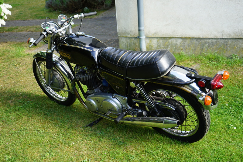 Block neu gelagert und abgedichtet, neuer Steuerkettenspanner, ein Mikuni ersetzt die Amal Vergaser. Feinölfilter verbaut.