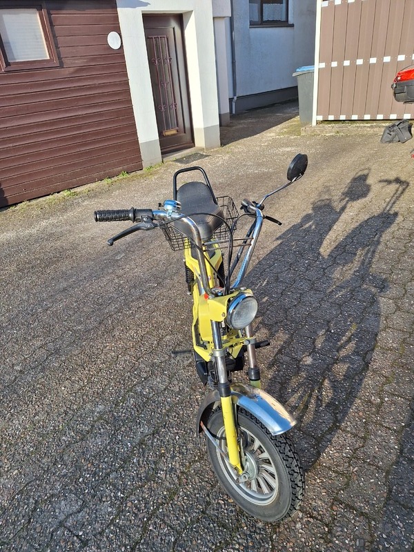 Die Mofa ist Fahrbereit und Verkehrssicher Sie hat etwas Rost und ein Paar gebrauchsspuren Die Mofa Hat ein Kiekstarter Springt  gut an.Ich habe nachträglich  einen Tacho angebaut Sie hat keine Papiere aber Eine Unbedenklichkeitsbescheinigung von Der Polizei . Die Mofa  ist Versichert Damit Sie eine Probe Fahrt machen können.  dieses ist ein Privat Verkauf