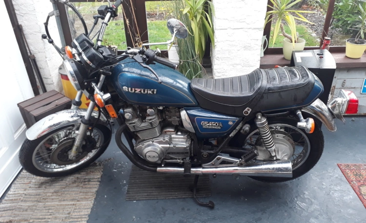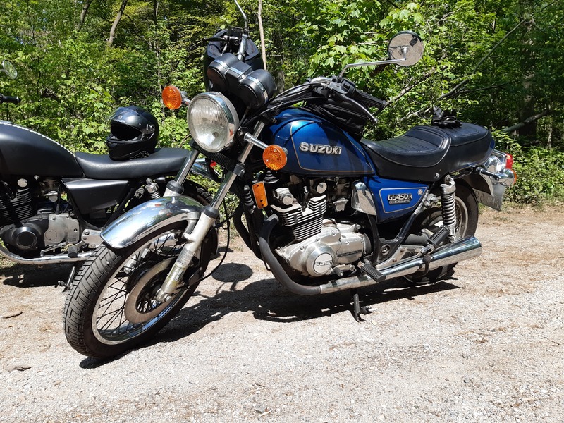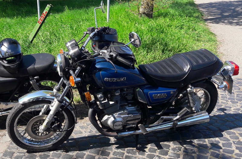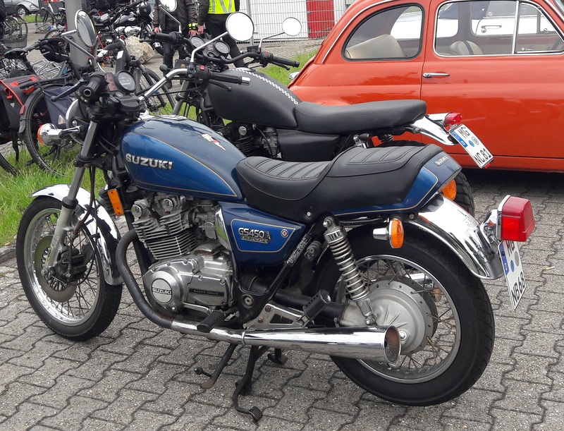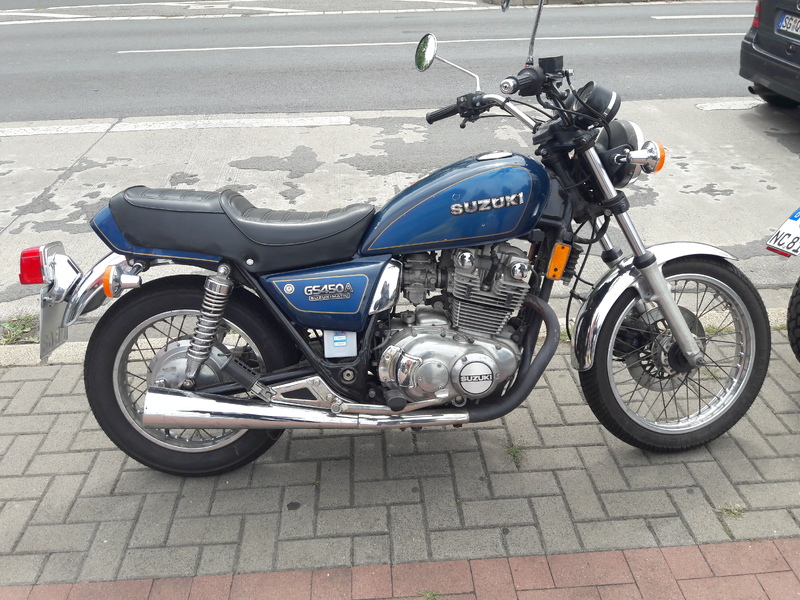 Rarität: Suzuki GS 450 A Suzukimatic mit Halb-Automatik und Kardan-Antrieb, in Europa so wohl nie zu haben gewsen, USA-Import mit deutschen Papieren und Zulassung, schöner originaler Zustand mit leichten Gebrauchsspuren, Bremsen überholt mit Stahlflex (ABE), Gel-Batterie von 2025, drauf setzen und los cruisen