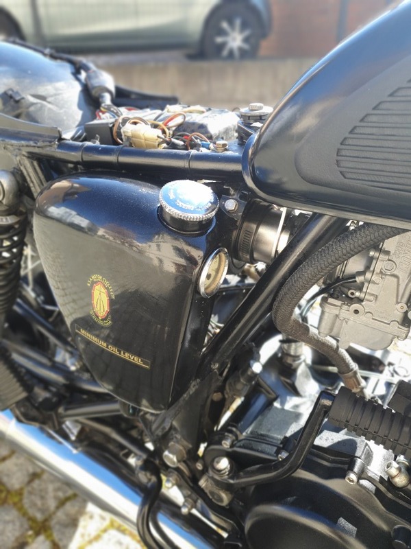 Es ist kein Cafe Racer oder Chopper, man sitzt und fährt entspannt. Uneingeschränkt alltagstauglich. Auch mit Sozia. Es sind Saddle Bags für kleines Reisegepäck und viel Literatur dabei. Auf Wunsch auch BSA Look mit angepasstem BSA Öltank und Emblemen (letzte Photos).
