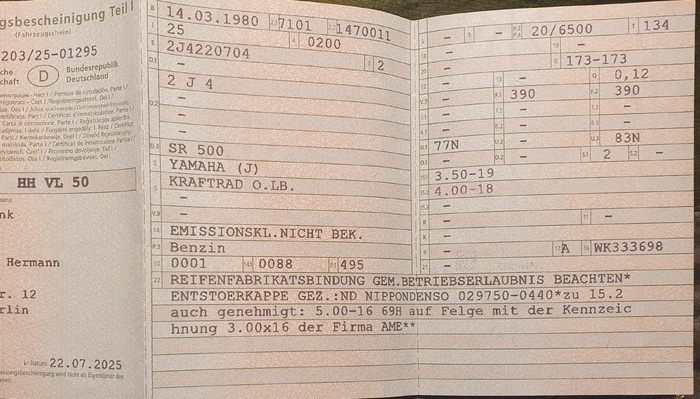 Startet immer und zieht wie ein Ochse. Keine Änderungen am Rahmen. Das AME Hinterrad mit Bereifung ist eingetragen. TÜV mache ich auf Wunsch vor Übergabe nochmals neu.