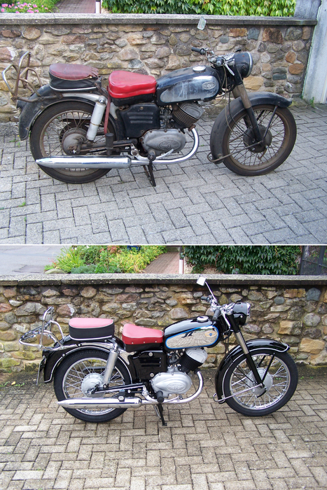 Im Jahr 2011/2012 vollständig zerlegt, inkl. Motor, und komplett neu aufgebaut. Lager, Dichtungen, Lack, Chrom, Sitzpolster, ... alles neu.