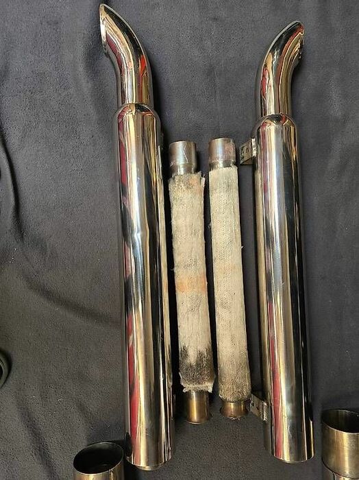 AC Cobra Sidepipes aus Edelstahl poliert 4" mit 4 in 1 Kollektor, und einschiebbaren Zusatzdämpfer, ein Sidepipe hat eine kleine Delle, sFr 1000,-, Tel. 0041/0792803708
